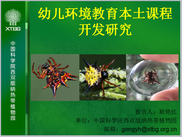 此次交流共有70 余名幼儿园的管理人员或骨干教师参加。版纳植物园条保处处长杨美庭,幼儿园代理园长玉落参加了精品课程的学习,科学传播与培训部环境教育人员耿艳红参加了研究课题的交流,并以《幼儿园环境教育本土课程开发研究》为题汇报了版纳植物园所申请的项目内容。
