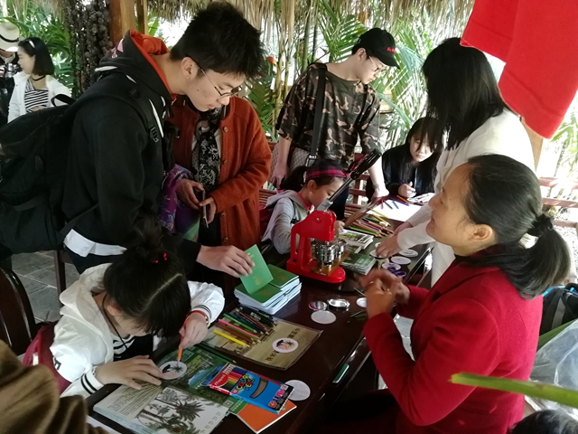 为迎接2018年国庆节,版纳植物园将推出“妙趣棕国”主题科普活动,主要包括4项内容:一是棕榈地图寻宝,棕榈地图带你欣赏棕榈之美,依图探索棕榈宝藏。二是棕榈编织,简单的棕榈树叶在灵巧的双手下秒变成栩栩如生的蚂蚱、小青蛇、蜻蜓。三是棕榈知识问答,有趣的棕榈知识问答既能开动大脑,活跃气氛,还会有礼品收获。四是蓑衣试穿,诗句青箬笠,绿蓑衣的形象平时只能想象,盖时可以亲身体验。