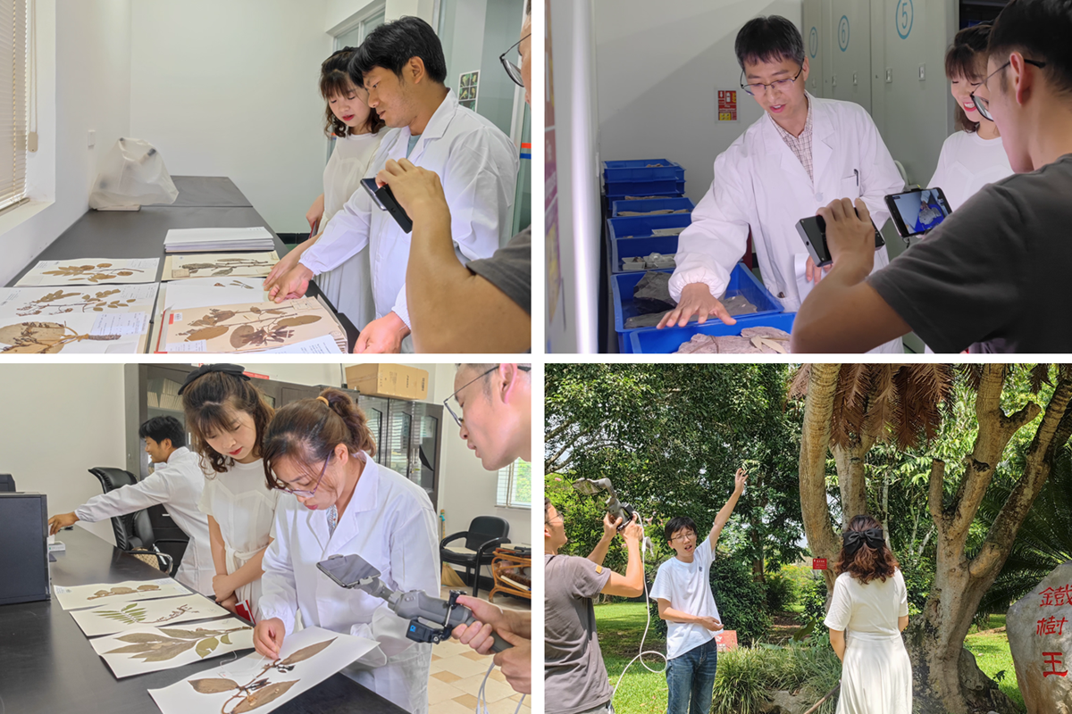5月27日,版纳植物园进行了“面临消逝的名字——走近稀有濒危植物”直播活动。带领公众走进名人名树园和标本馆,通过对园区中十余种濒危植物的介绍,向公众传达了植物濒危的机制及相应的保护措施,之后走进版纳植物园标本馆,通过参观正号室、复号室、植物化石标本室、体验标本制作和拍摄,介绍了标本馆在植物研究和保护方面所开展的工作,并通过若干件历史久远的标本,向公众传递了一代代植物园人砥砺前行、严谨治学的科学精神。