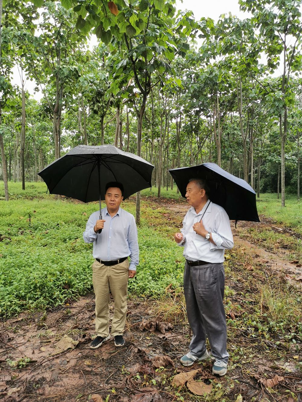 访问期间,裴盛基、马德超及植物医生一行还参观了轻木基地、柚木林、西园谱及棕榈园等区域。裴盛基对版纳植物园的建园历史以及轻木引种历史、柚木种植故事等进行了重点介绍。