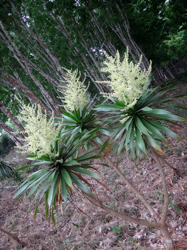 近年来, 受经济利益的驱使,人们对柬埔寨龙血树进行大量的采集和砍伐,加之其自然更新能力差,且产区植被不断受到破坏,其生存受到严重威胁,濒于灭绝。2001年被国家列为二级珍稀濒危保护植物,已列入《中国植物红皮书-稀有濒危植物》中。考虑到其重要的生态价值、经济价值和目前的濒危状况,版纳植物园于2003年扦插繁殖柬埔寨龙血树幼苗,作为纪念蔡希陶发现我国国产柬埔寨龙血树,进行示范种植。今年,种植的142亩柬埔寨龙血树花开满山,白茫茫一片,开花植株达90%以上,这标志着柬埔寨龙血树迁地保护种植获得成功。