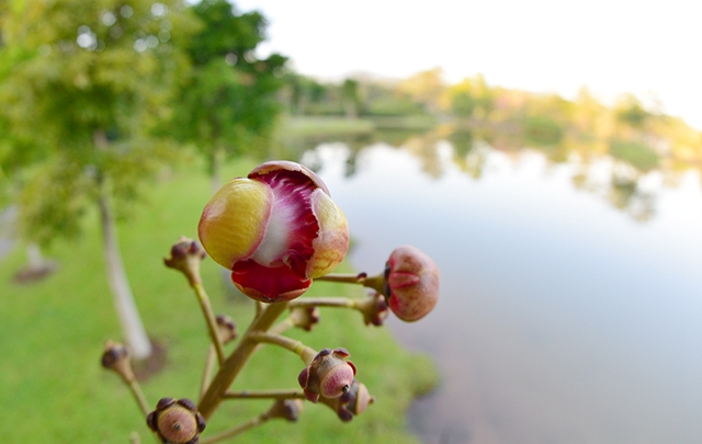 近些年出国旅游很流行,东南亚国家是热门目的地,很多人回国后就会问:“这种漂亮的花叫什么名字?导游跟我们说是菩提花,是不是真的?”当然不是真的,菩提树(Ficus religiosa)是桑科榕属植物,花为隐头花序,很不起眼。把炮弹树的花说成“菩提花”,可能是因为这种植物也经常被栽在寺庙周边,被误认为是菩提树开的花。