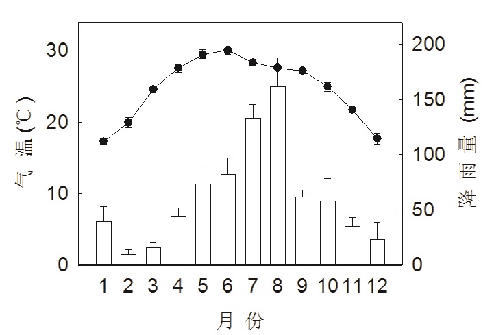 近六年(2012.01-2017.12)的气象监测显示:年平均气温24.7℃、最高气温43.7℃、最低气温3.6℃,地面最高温度77.9℃、地面最低温度2.1℃,空气湿度 67%,年平均降雨量732.8 mm(其中雨季5-10月的降雨量占77.9%),日照时数2350 h,潜在蒸发量1750 mm。站区拥有保存完好的干热河谷的典型植被类型,即稀树灌木草丛和肉质多刺灌丛,为干热河谷植被生态系统演替过程与格局的研究及退化干热河谷生态系统恢复与重建提供了天然的理想研究基地。