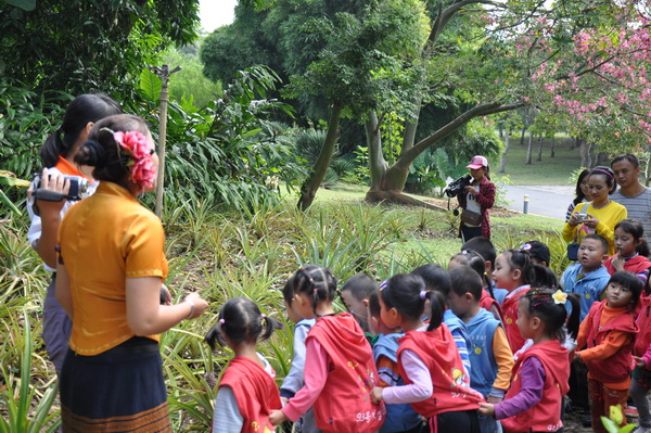 10月30日是西方传统的“鬼节”——万圣节前夕。这一天,孩子们都会迫不及待地穿上五颜六色的化妆服,戴上千奇百怪的面具,提着一盏“杰克灯”走家窜户,向大人们索要节日的礼物,如果不给,就会上演一场恶作剧。在这特殊的节日,版纳植物园也迎来了19个来自景洪市幼儿园4-5岁的调皮小孩,以及他们的爸爸妈妈,共53人。同时,也为他们准备了为期两天的“快乐周末亲子游”。