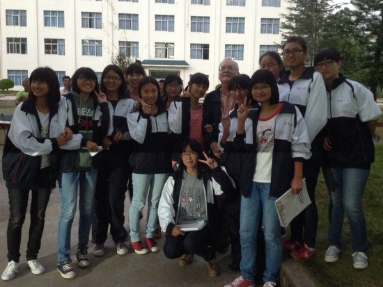 11月4日,中国科学院西双版纳热带植物园2013高级生态学与保护生物学野外培训班10个国家的教授(包括一些著名科学家)和研究生等中外科技人员一行30余人专程到景东一中,与一中200余名(4个班)高中生进行了面对面的交流。