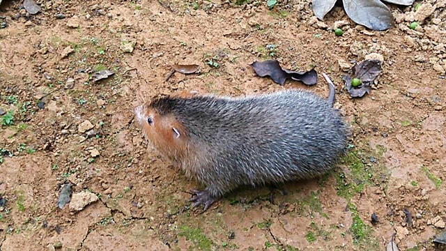 19日早晨,版纳植物园科普人员发现博物馆前的水池中央的草丛在摇动,走近池边一看,原来有一只大竹鼠躲在草丛中,瞪着惊恐的小眼睛,四处张望,全身湿漉漉的,还不停地瑟瑟发抖。工作人员迅速找来抄网实施救助,费了好大功夫才把它抄到网里,在网里的竹鼠嘴里不停地发出“呼呼”声,有时是“咯、咯”的磨牙声,或露出锋利粗大的门齿,吓唬人。随即工作人员把它放归了自然,这胖呼呼的竹鼠挪动着身体,不紧不慢地消失在热带雨林中。