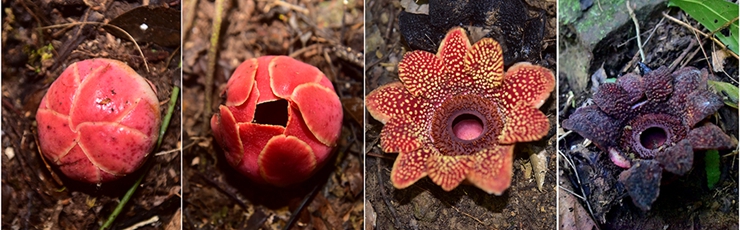 寄生花生长情况(花骨朵、裂片打开、正在盛开的雌花和开败的花朵)