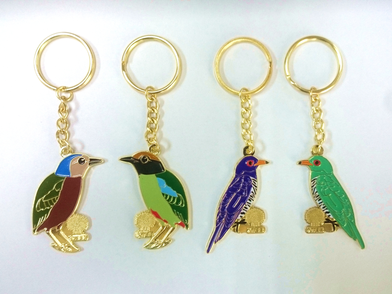 这些纪念品的设计原型主要为此次观鸟节的明星鸟种绿胸八色鸫和紫金鹃。其中,布偶的形象为憨态可掬的绿胸八色鸫。两款金属钥匙扣分别以绿胸八色鸫和紫金鹃为原型进行设计,版纳植物园工作人员将蓝枕八色鸫与翠金鹃分别设计到钥匙扣的背面,一个钥匙扣表现两种珍稀鸟类。值得一提的是,杯垫和文化衫的绿胸八色鸫图案为版纳植物园青年科学家林华副研究员绘制。这些纪念品的出炉,将大大丰富版纳植物园的科普产品,并能够更为直观地向游客展示版纳地区的生物多样性。这些产品将赠送给每一位来参加观鸟节的嘉宾,并在以后作为具有植物园特色的活动纪念品进行发放或旅游纪念品进行销售。