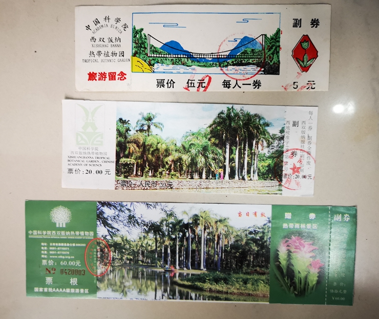 版纳植物园用过的部分门票