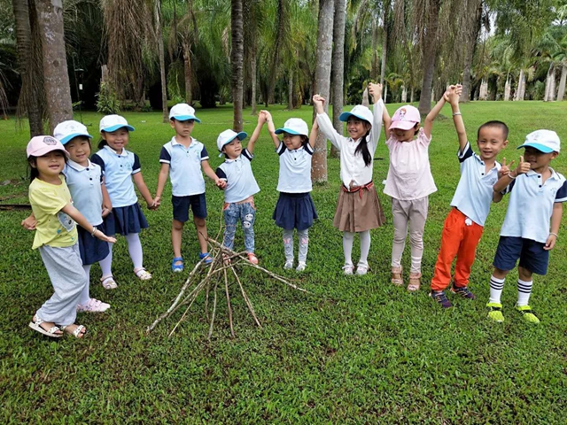 《飞舞吧,叶子》使小班幼儿观察体验了菩提树、羊蹄甲、橡皮榕、菠萝蜜、雨树、瓜栗等植物的落叶,或黄、或棕、或黑、或红、或灰、或色彩混杂的叶子诉说着秋日的来临,菩提树的叶落尤为明显。通过飞叶子游戏,小朋友对比发现大小及形状各不相同的叶子飞舞的速度和姿态也是大不相同的。《奇特的叶子娃娃》使中班小朋友在叶子PK游戏中更加细致地观察探索叶子的形状、大小、颜色、叶脉等特征。多姿多彩的叶子会不会也有自己的心情呢?通过绘本导赏,孩子们脑洞大开,用绘画的形式创作了一个个可爱的叶子娃娃。《好玩的枯树枝》使大班幼儿体验了不起眼儿的树枝带来的乐趣。平衡游戏“运宝宝”、“搭小山”锻炼了孩子们的合作能力,也使他们亲身体验了如何从形状、粗细、长短不同的树枝上寻找平衡点。游戏之余,孩子们还参考老师展示的枯树枝彩绘作品创作了自己的树枝绘画。