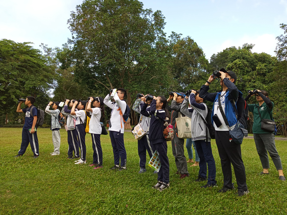 营员正在观察蓝喉拟啄木鸟