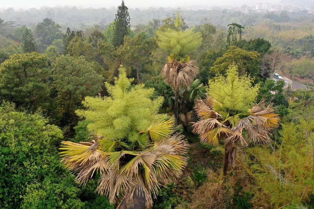 “三花聚顶”:版纳植物园贝叶棕即将开花