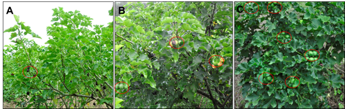 A 赤霉素处理;B对照;C 赤霉素合成抑制剂处理的小桐子植株