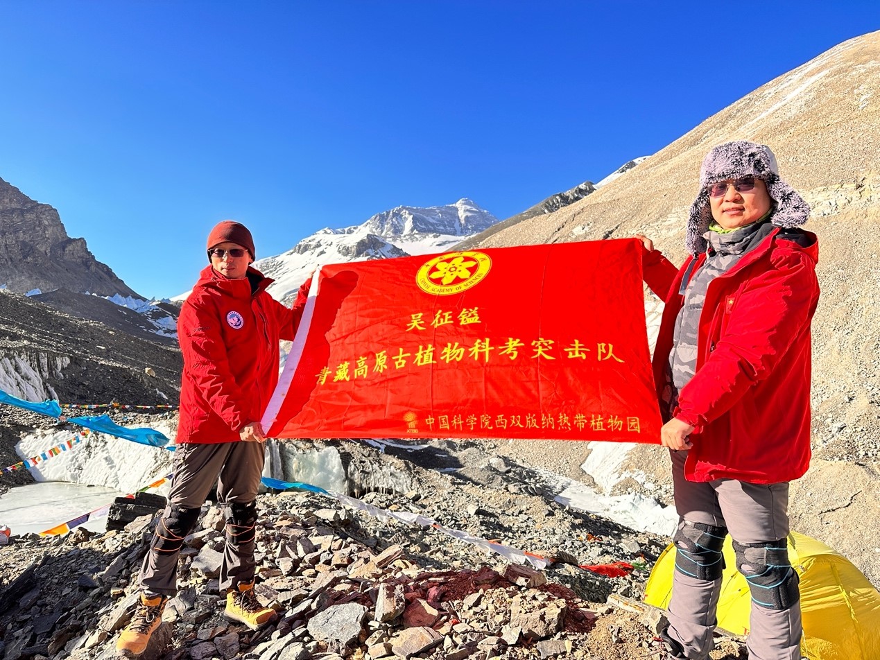 5月3日至17日,中国科学院西双版纳热带植物园(以下简称“版纳植物园”)古生态研究组研究员苏涛等3人联合中科院古脊椎动物与古人类研究所(以下简称“古脊椎所”)研究人员,在珠峰极高海拔地区开展野外科学考察与样品采集工作。