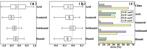 研究结果表明,VPD对植被生产力表现出显著的负效应(尤其在干旱和半干旱地区),而气温在排除交互作用后总体呈现正效应,但当高温与高VPD协同发生时,气温的正向效应会被显著削弱;基于CMIP6多模式集合的预测进一步显示,未来VPD的负面效应将持续增强,气温的正效应将逐渐减弱,这种变化在中纬度地区表现最为显著。该研究不仅系统揭示了VPD在调控陆地生态系统功能中的关键作用,为理解气候变化下植被响应机制提供了新的理论依据,更重要的是发现了温度-VPD协同效应机制,这一创新发现既为解释植被生产力响应区域差异提供了新视角,也为未来生态系统管理、碳循环预测及植被适应策略制定提供了重要科学参考。