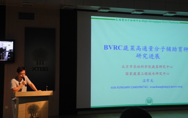 温常龙博士作题为“BVRC蔬菜高通量分子辅助育种研究进展”的报告,主要介绍了全国蔬菜种子市场前景,高通量蔬菜分子辅助育种技术平台及应用,蔬菜作物核酸指纹研究进展,并展示了其下属公司北京京研益农科技发展中心取得的成绩。温常龙主要从事高通量分子辅助育种、黄瓜重要性状基因精细定位、瓜类作物SNP指纹等研究。研究成果在Molecular Plant、Theor Appl Genet、Plos One等期刊发表;获得国家发明专利2项,申请发明专利6项;获得农业部新品种鉴定保护黄瓜新品种1个,北京市品种鉴定黄瓜新品种6个。