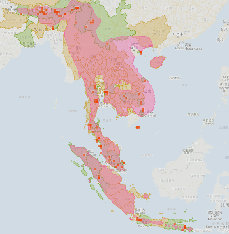 公众科学记录的巨松鼠分布图(iNaturalist)