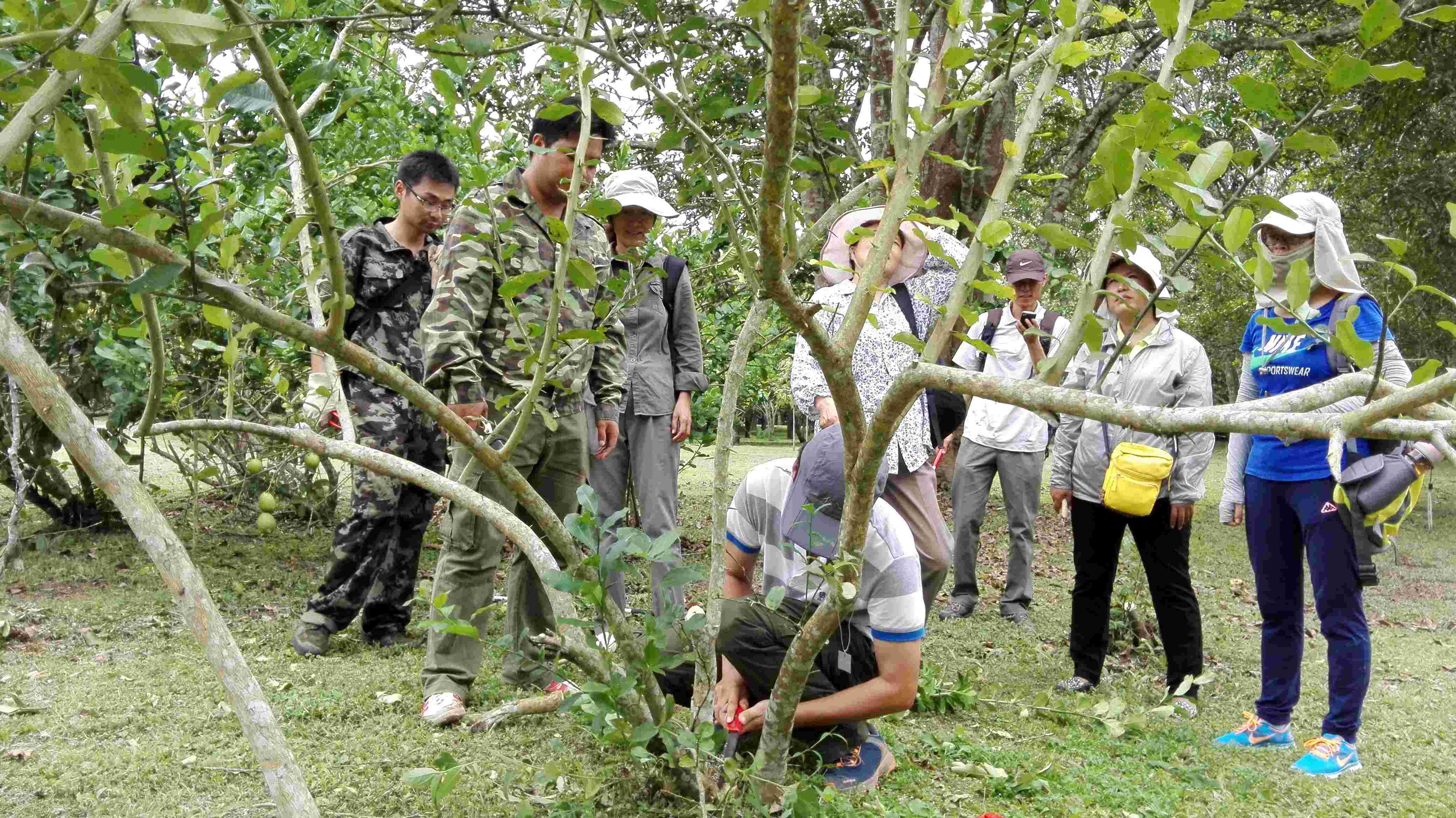 8月19日下午,针对各专类园区园林修剪所存在的问题,版纳植物园园林园艺部副部长施济普对各专类园区管理组组长、主管以及工作人员进行了分批次的园林修剪技术实地指导与讲解,并且,以百果园以及藤本园中植物为实践对象,旨在提高专类园区管理者园区管理水平,使其更能胜任本职工作,进而提升所辖专类园区的质量。参与此次园林修剪技术实地学习的是西片区各专类园区管理组组长、主管以及工作人员。