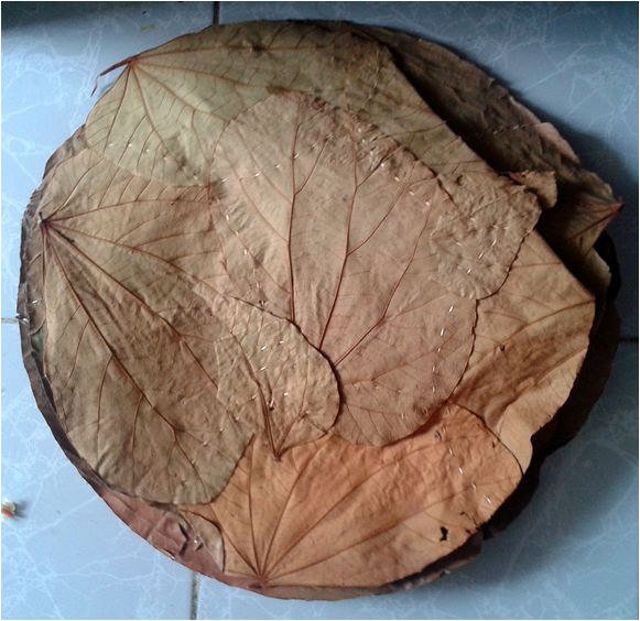 印度东北部居民用娑罗双叶子编制成的吃饭用的盘子 (图源:Wikipedia)