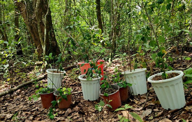 2017年底开,园林园艺部工作人员通过扦插和嫁接的方式对该物种进行了扩繁,至今共繁育出200余株;2019年8月14日,先与西双版纳国家级自然保护区勐养子保护区工作人员联系,对其回归点的选择进行了实地调查;8月21日,正式开展第一批60株幼苗的野外回归工作。