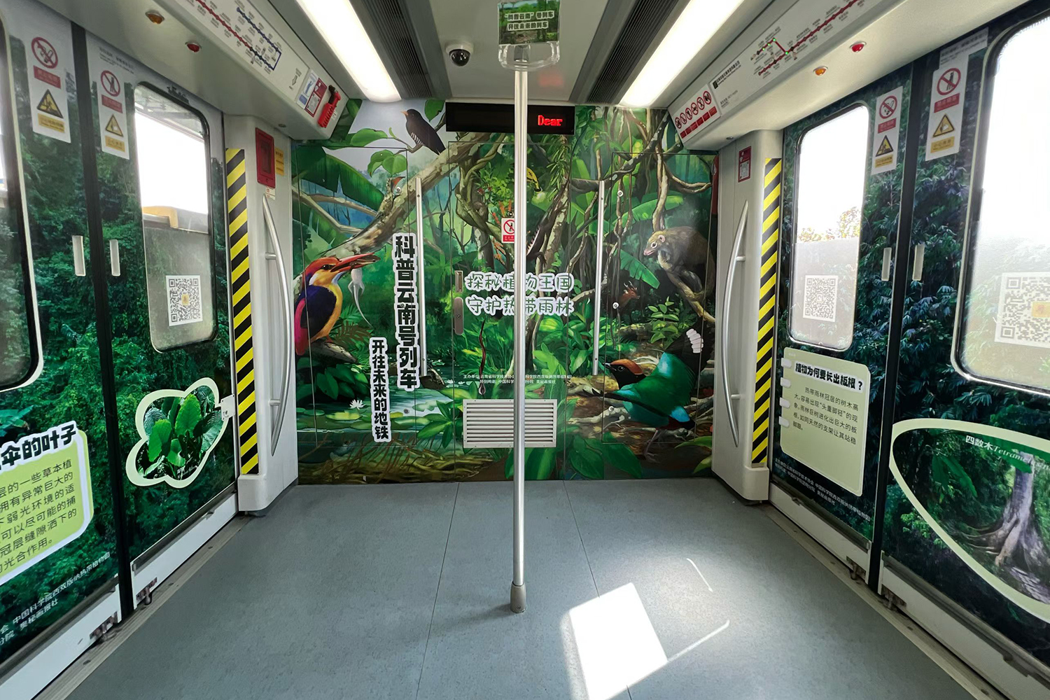 10月20日,第九期“科普云南号”主题列车在昆明地铁1、2号线正式发车。本次科普展依托地铁这一城市动脉,以“探秘植物王国,守护热带雨林”为主题,打造了一座移动的热带雨林展馆,为市民与游客带来了一场穿梭于城市之中的沉浸式生态科普之旅。