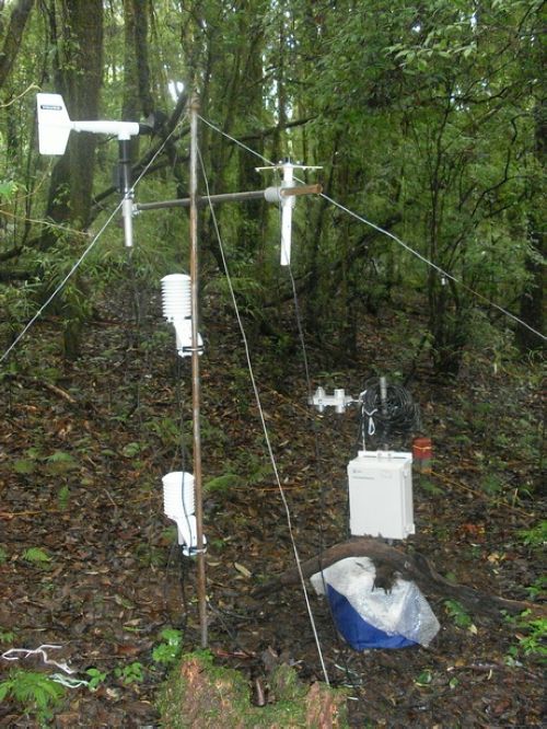 在云南哀牢山国家级自然保护区内,森林群落外貌沿海拔升高发生明显的变化,尤其是在海拔2500-2600m以上,森林群落类型逐渐由中山湿性常绿阔叶林转变为山顶苔藓矮林,林冠高度也由25-30m下降到5-7m。气候环境条件的差异在这一群落外貌的变化中扮演重要角色,但由于海拔2600m以上地区人烟稀少,不易通达,以往对其的认识多来自于推测。