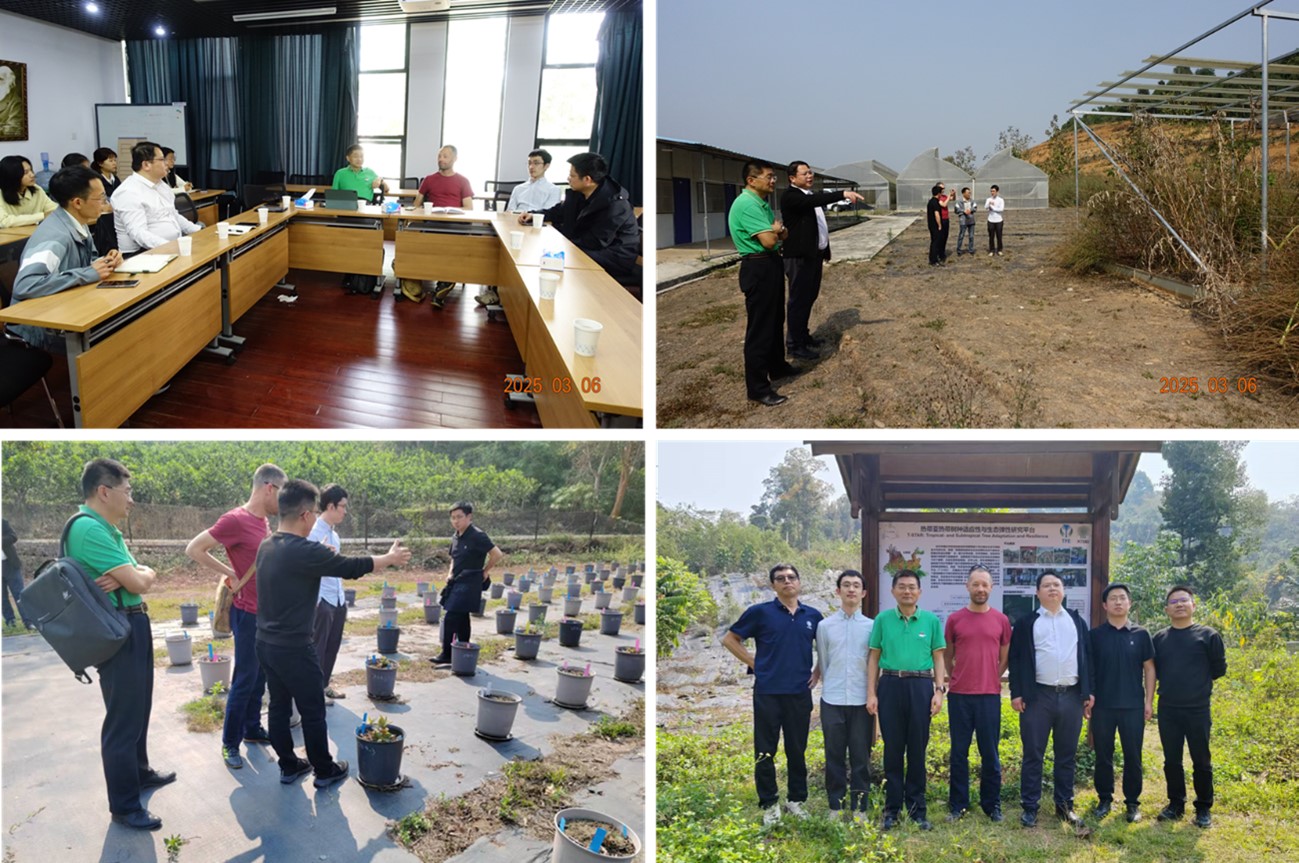 上午举行的专题座谈会上,双方围绕"全球变化背景下入侵植物的适应性机制"等学科前沿问题展开深入研讨。研究组负责人郑玉龙研究员对van Kleunen教授一行到访表示欢迎,并系统介绍了团队在生物入侵机制研究、生态修复技术研发等领域的最新进展。随后,双方就当前开展工作及今后可能的合作进行了交流。会后,van Kleunen教授一行实地考察了研究组生物炭制备平台、虎杖种质圃及同质种植园、长期控水研究平台,及版纳植物园“西南典型森林生态系统弹性及对气候变化的响应和适应策略(简称弹性平台)”等特色科研平台及设施,详细了解了各平台在全球变化背景下不同类群植物适应及响应机制解析等方向的应用成果。双方就今后合作方向达成初步合作意向。