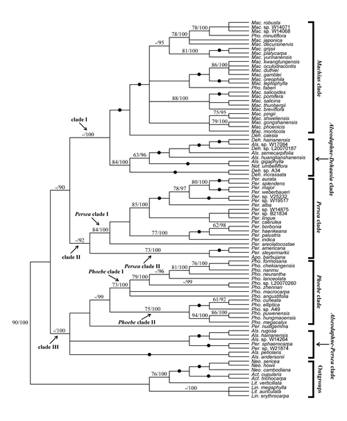 樟科鳄梨属群植物是新、旧世界热带与亚热带森林群落中一个重要的被子植物基部类群,在樟科中的系统位置相当于族,共包含七个属:油丹属(Alseodaphne)、Apollonias属、檬果樟属(Caryodaphnopsis)、莲桂属(Dehaasia)、润楠属(Machilus)、赛楠属(Nothaphoebe)、鳄梨属(Persea)和楠属(Phoebe),约400~450种,主要分布于亚洲的热带至亚热带地区,但约有1/4的种类分布于美洲的热带至亚热带地区。该类群植物的分类学及系统演化关系一直存在疑问,其热带、亚热带亚洲—美洲间断分布格局的成因更缺乏深入细致的研究。