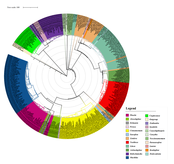 图2. 利用ITS序列构建的286个中国樟科植物的系统发育树