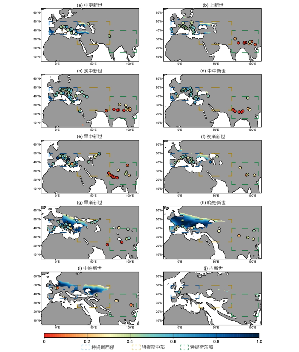 特提斯海的进退消亡是新生代地球上发生的重大地质事件之一,它改变了海陆分布格局和水汽输送路径,对欧亚大陆乃至全球气候环境和生物多样性格局均产生了深远影响。然而,新生代特提斯海区域的气候演变仍然缺乏数据-模型的综合性研究。同时,由于缺乏大数据和模型模拟的综合分析,关于欧亚大陆地中海气候的起源和演化仍然有很大争议。