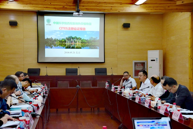 5月21日,版纳植物园CITES(《濒危野生动植物种国际贸易公约》)科研单位注册论证评审会在中国林业科学院木材工业研究所三楼会议室召开。此次论证会由中国濒危物种科学委员会(下称濒科委)主办,评审专家委员会由国家林业和草原局、国家濒危物种进出口管理办公室、中科院昆明植物所、中科院新疆生态地理研究所、中科院华南植物园、云南省林业科学院的9位专家组成,濒科委常务副主任蒋志刚主持评审会。与会专家在听取版纳植物园汇报后,一致同意版纳植物园通过科研单位注册论证评审。