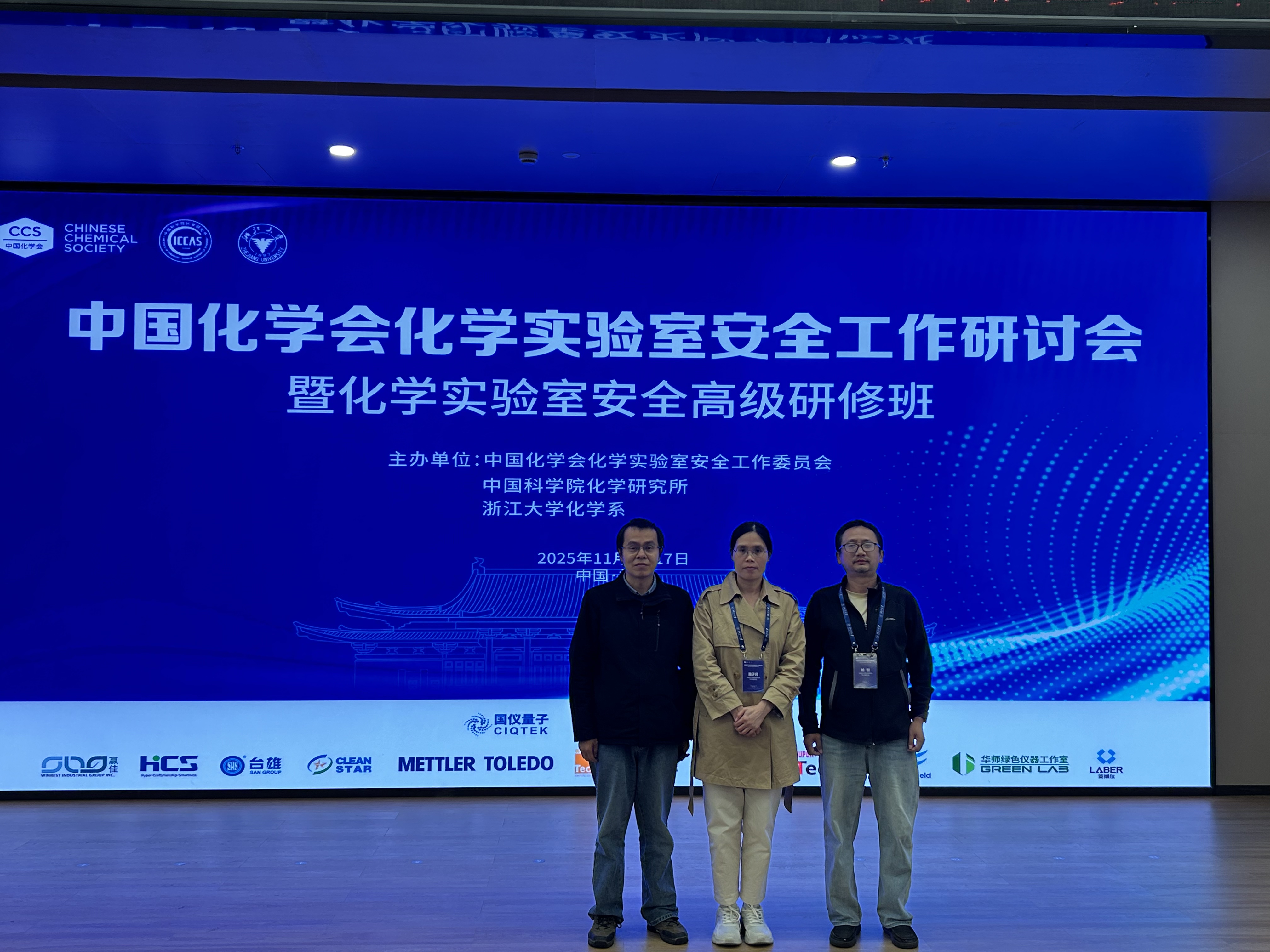 2025年11月13至17日,由中国化学会化学实验室安全工作委员会、中国科学院化学研究所、浙江大学化学系联合举办的“2025年中国化学会化学实验室安全工作研讨会暨化学实验室安全高级研修班”(以下简称研修班)在杭州举行。来自中国科学院研究所、国内高校、企业等中国化学会化学实验室安全工作委员会单位的化学、化工、学科教育、安全管理等领域的220余名基层工作者、安全管理者参加。公共技术中心(以下简称中心)纳智、周翔、易子月参加了此次研修学习。