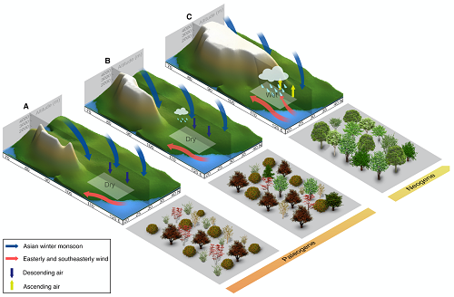 新生代青藏高原的形成和演变对东亚的气候和生物多样性都产生了深刻的影响,对东亚新生代气候和生物演变的研究,就离不开讨论青藏高原的生长。前人的研究表明东亚夏季风和印度夏季风、以及亚洲冬季风都和青藏高原的形成演变密切相关。由于青藏高原的隆升是差异化的,不同地块的隆升对气候、植被和植物多样性的影响还有许多未解之谜。