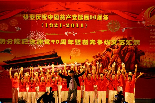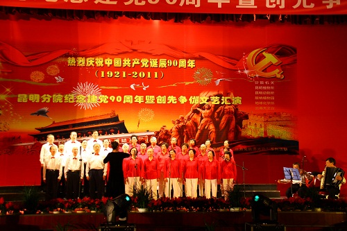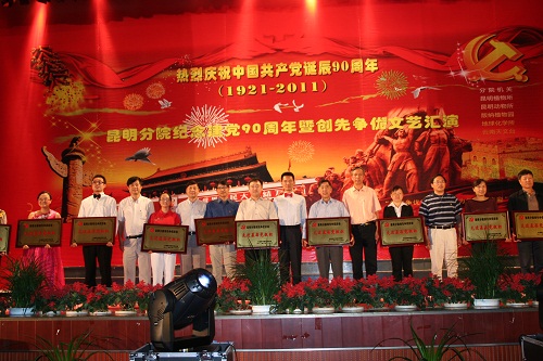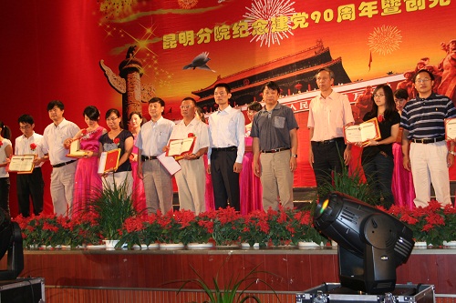 6月28日,昆明分院隆重举行“纪念建党90周年暨创先争优文艺汇演”。昆明分院党组书记李磊、院长王庆礼以及各单位领导班子成员出席活动,在“创先争优”活动中受表彰的先进基层党组织代表、优秀党员、先进党务工作者以及广大党员群众、离退休职工代表等共500余人参加活动。我园出席的领导有园党委书记、副主任李宏伟,副主任曹敏和李庆军。