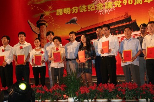 汇演结束后,杨君兴副书记宣读了昆明分院党组关于表彰先进基层党组织、优秀共产党员和优秀党务工作者的决定。我园昆明分院党支部与机关党支部获得“昆明分院先进基层党组织”称号;陈志云、邓晓保、张教林、陈文有、段世新、杨大荣、彭艳琼等7名同志获得“昆明分院优秀共产党员”称号;黄加元与石凤平两位同志获得“昆明分院优秀党务工作者”称号。