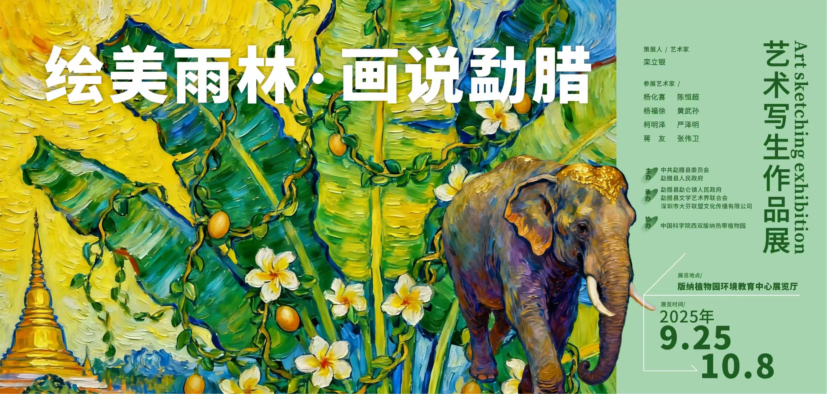 本次展览由中共勐腊县委员会、勐腊县人民政府主办,勐仑镇人民政府、勐腊县文学艺术界联合会、深圳市大芬联盟文化传播有限公司承办,版纳植物园协办,展览共展出74幅油画艺术作品,涵盖亚洲象、孔雀、雨林、傣寨等诸多雨林元素,热烈而奔放的色彩,为即将到来的佳节增添了浓厚的雨林艺术文化气息。展览将展至10月8日结束,欢迎广大公众前来参观。