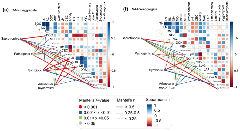 相关研究结果以Land use change alters carbon and nitrogen dynamics mediated by fungal functional guilds within soil aggregates为题发表在Science of The Total Environment上。该研究得到国家自然科学基金面上项目、云南省基础研究计划及中国科学院青促会和“西部青年学者”等项目的资助。