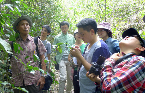 1958年5月,一群年轻的植物园人在蔡希陶教授的带领下,为寻找“植物大本营”而在大勐龙小街揭开了我国第一座热带植物园建园的序幕。同时在曼仰广村约20ha的龙山林中建立了一2500m2的热带森林生物地理群落研究站样方。55年后的5月18日,同样又是一群年轻的植物园人,在植物园前辈陶国达老师的带领下,来此地追寻这段足迹,重温这段历史,并探求曼仰广龙山林及其类似片段森林有效的保护与恢复途径。