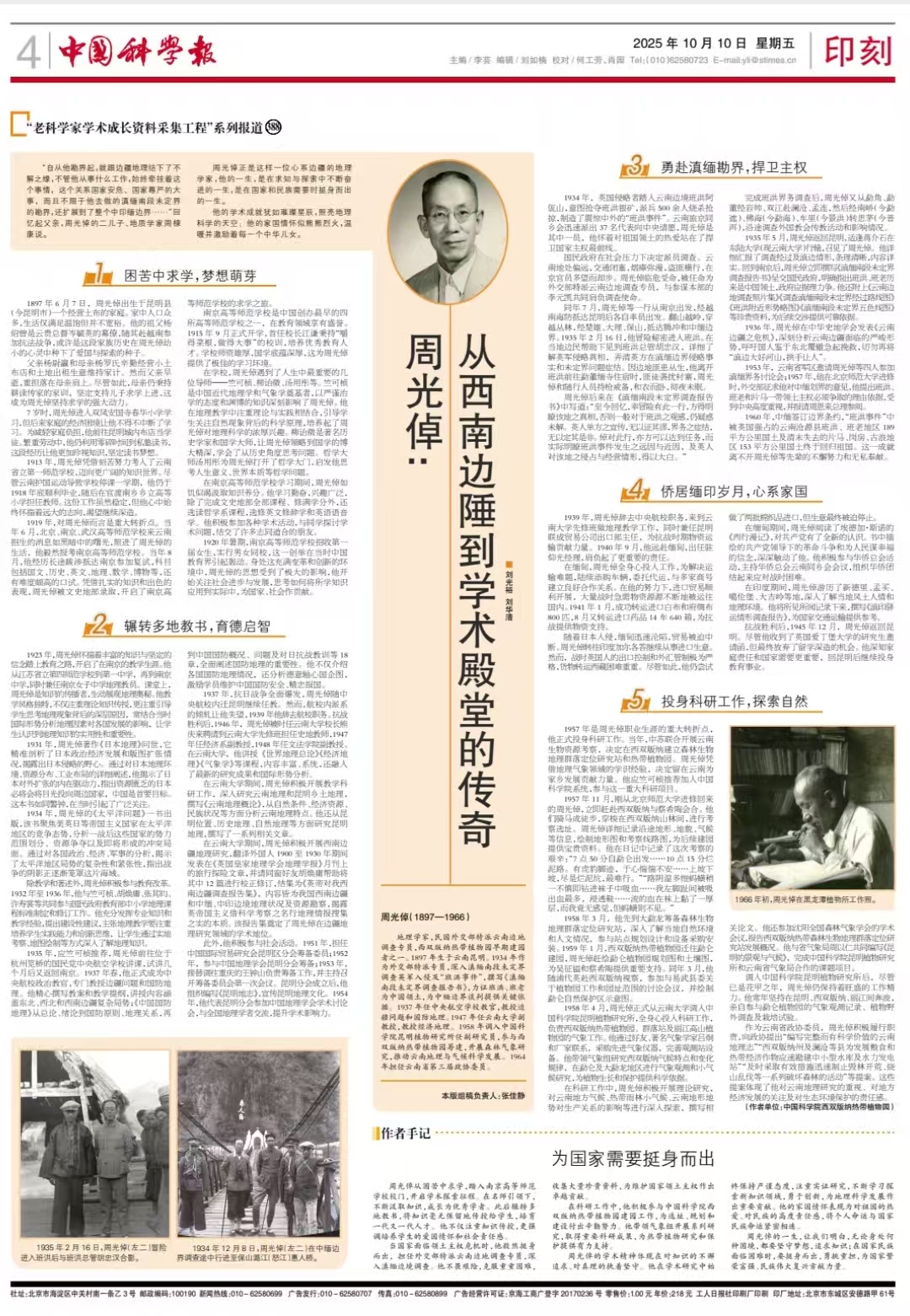 《中国科学报》报道版纳植物园地理学家周光倬的故事